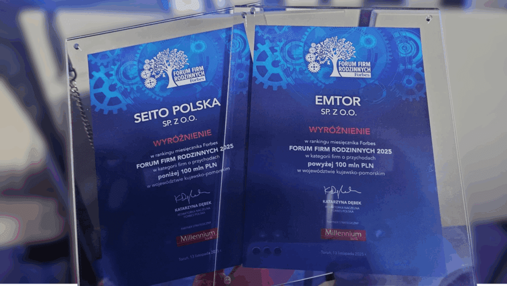 Z dumą informujemy, że firma Emtor Sp. z o.o. oraz Seito Polska Sp. z o.o. znalazły się w gronie laureatów VIII Forum Firm Rodzinnych Forbes!
