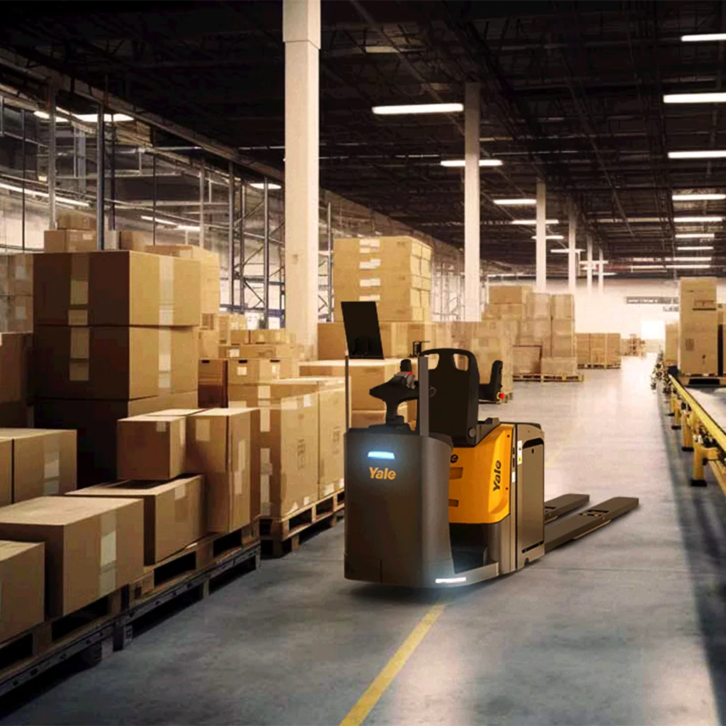 Całkowicie nowy wózek paletowy do kompletacji zamówień Yale® został zbudowany tak, aby był wytrzymały, inteligentny, niezawodny i wydajny. Zaprojektowany z myślą o efektywnym transporcie poziomym w zastosowaniach od średniej do wysokiej intensywności, doskonale sprawdza się w ograniczonej przestrzeni. Dzięki opcji wydłużonych wideł możliwe jest łatwe przewożenie dwóch palet lub trzech europalet w poprzek.